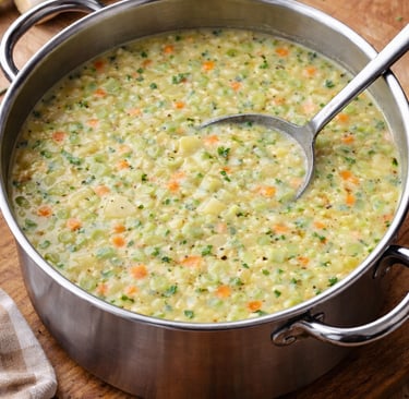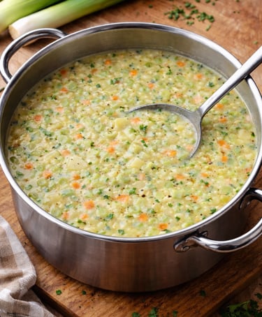 One of the things that makes this dish so good, in my opinion, is that it showcases not just leeks but three types of onions - leeks, scallions, and yellow onions. Each onion type brings it's own delicious flavor to the soup while not overpowering it, and it's this combination of onions with the potatoes and carrots that make this dish one of my absolute favorites. Pair it with a loaf of crusty bread and salad, and you have a complete meal. My grandkids LOVE this soup and have no idea that they are eating so many onions. They just know it tastes good!